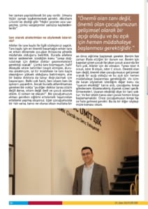 Aileler ile tanı kaybı ile ilgili söyleşimizi yaptık. Tanı kaybı için en önemli basamağın erken tanı ve erken dönemde çocuğun ihtiyacına yönelik müdahale olduğunu belirttik. Burada ailelere tekrar seslenmek istediğim konu “tanıyı doğrulatmak için doktor doktor gezmemeleri gerektiği olacak”. Çünkü tanı koymuşum, hafif düzeyde otizm belirtileri tespit etmişim, durumu anlatmışım, iyi bir müdahale ile tanı kaybı olasılığının yüksek olduğunu belirtmişim, aile bir başka doktora da tanıyı doğrulatmak için başvuruyor. Belki çok haklı, ben olsam ben de aynısını yapardım. Ancak burada atlanılmaması gereken bir nokta “ya diğer doktor tanısı otizm değil derse, otizm değil dedi ve çocuk aslında otizm. O zaman ne olacak?”. Biz çocuğumuzun alması gereken eğitimi ertelersek hayatından erteleme yapmış oluyoruz. Eğer çocuğumuzda bir risk varsa, tanısı ne olursa olsun mutlaka bir an önce eğitime başlamak gerekir. Benim her zaman ifade ettiğim bir durum var. Benim için kapıdan giren çocuk ile çıkan çocuk arasında bir fark yok. Aileler için de olmasın. Tanısı ister A olsun, ister B olsun, ister C olsun. Önemli olan tanı değil, önemli olan çocuğumuzun gelişimsel olarak bir açığı olduğu ve bu açık için hemen müdahaleye başlanması gerektiğidir. Ve içimde kalan söylemek istediğim diğer konu da; “uyaran eksikliği” tanısı aldı, çocuğumu kreşe göndersem düzelecekmiş diyerek süreci geciktirmemeleri. Uyaran eksikliği diye bir tanı yoktur. Ve her otizm tanısı alan çocuk hemen kreşe başlamamalıdır. Önce çocuğumuzun kreşe hazır hale gelmesi gerekir. Bu da bir diğer söyleşimizin konusu olsun.