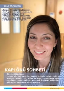 Şu an ben de bu satırları size bir kapı önünden yazıyorum. Rehabilitasyon merkezinde her hafta beklemeye alıştığım, içerideki kızımın sesini duyabileceğim mesafede durduğum bir kapının önündeyim 8 yıldır. İçeriden gelen seslere göre dersin nasıl geçtiğini anlamaya çalıştığım, ders bitiminde öğretmeninden güzel şeyler duyma heyecanını yaşadığım bir kapı önü burası. Ben yalnız değilim elbette, benim gibi her katta her kapının önünde benzer hislerle bekleyen anneler var. Bizler de tıpkı hastanelerde yaşlı teyzelerin romatizmalarını anlatarak başlayan sohbetleri gibi ihtiyaç duyuyoruz sohbet etmeye. Bizler aynı kulvarda gibi görünsek de, herkesin yarışının farklı olduğunu bilen ama yine de bir diğerinden yeni bir şey öğrenir miyiz diye birbirini didikleyen anneleriz. Nadiren de olsa babaları da görüyoruz ama genelde kapıların önlerinin sahibi annelerdir bilirsiniz.