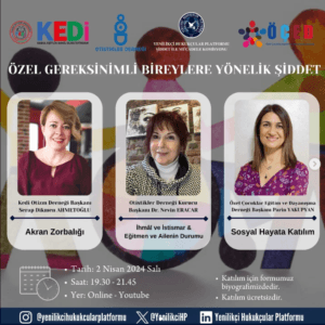 Yenilikçi Hukukçular Platformu Şiddet İle Mücadele Komisyonu, Kedi Otizm Derneği, Otistikler Derneği ve Özel Çocuklar Eğitim ve Dayanışma Derneği tarafından ortak düzenlenen, Kedi Otizm Derneği Başkanı Serap Dikmen AHMETOĞLU, Otistikler Derneği Kurucu Başkanı Dr. Nevin ERACAR ve Özel Çocuklar Eğitim ve Dayanışma Derneği Başkanı Parin YAKUPYAN’ın konuk olacağı, “Akran Zorbalığı, İhmâl ve İstismar & Eğitmen ve Ailenin Durumu, Sosyal Hayata Katılım” başlıklarını konuşacağımız interaktif bir seminer sizleri bekliyor!✨