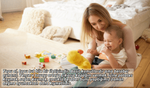 Günümüzün en büyük sorunlarından biri de, anne-babaların televizyon karşısında telefonlarla geçirdiği fazla zaman. Çağımızda hepimizin elinde bir ya da iki tane telefon var. Telefonla geçirilen süre, farkında olmadan çocukla iletişimden çalınıyor. Bunu da aklımızda tutmamız lazım. Çocukla bir iletişim olması için onunla oyun oynayacak bir aktivite bulmalıyız. Bu arada annelerin görevi öğretmenlik de değildir. Öğretmenlik yapar gibi şekilleri öğreteyim, renkleri öğreteyim ile uğraşmaya gerek yok. Çocukla spontan oyun oynayarak iletişim kurmak çok daha önemlidir.