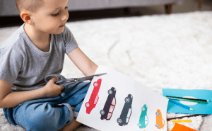 O zamana kadar makas hep çocuğun eline verilmiş. Bu şimdi size çok basit gözükebilir ama aslında çok önemli. Biz ilk başta makası masadan nasıl alacağını, parmaklarını nasıl kullanacağını öğrettik. Zaten ince motor açısından çok sıkıntı yaşayan bir çocuğumuz değildi. Çünkü makası açmak ve kapamak parmakları zorlayan bir harekettir. Belli bir kas olgunluğu gerektirir. Çocuğumuz buna sahipti ve sistematik bir çalışma ile basit bir şekli normal kesebilir bir hale geldi.