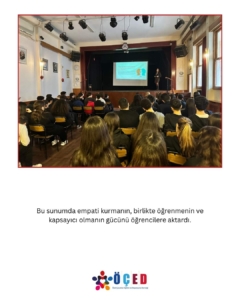 Bu sunumda empati kurmanın, birlikte öğrenmenin ve kapsayıcı olmanın gücünü öğrencilere aktardı.